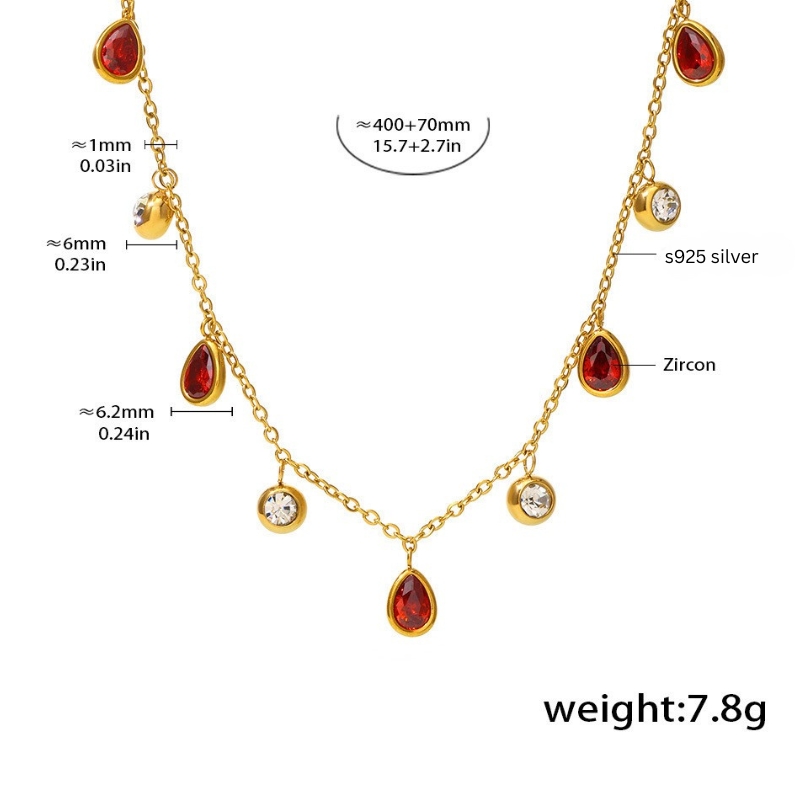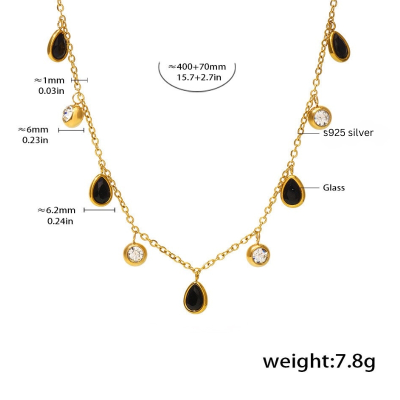 N22609 S925 Dream water drop tassels, colorful rhinestones, collarbone necklace