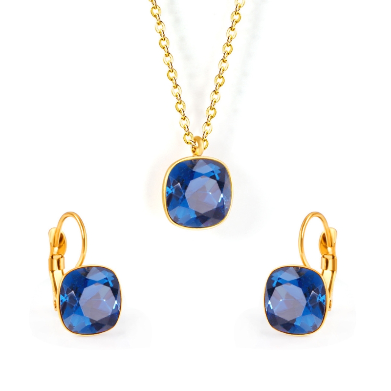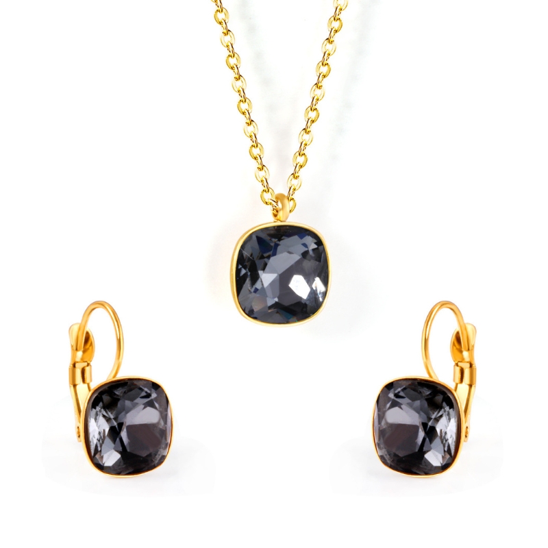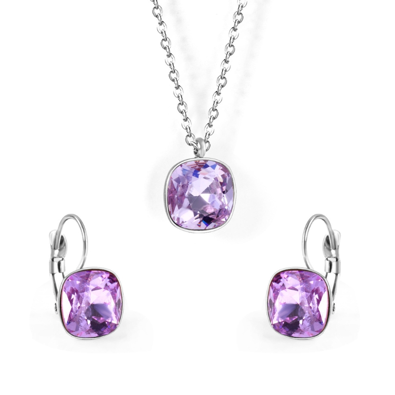S22704 S925 silver square zircon necklace earring set