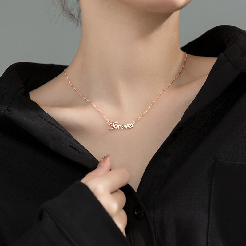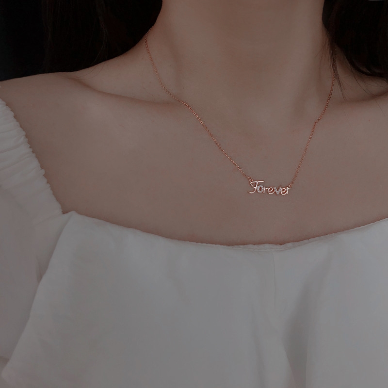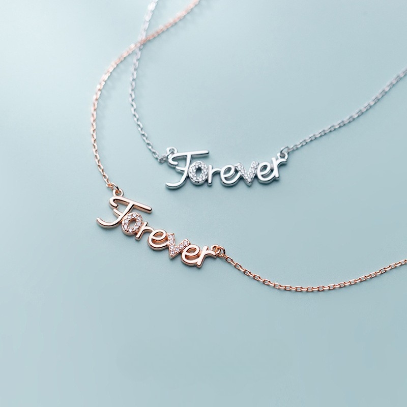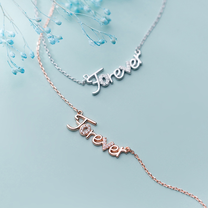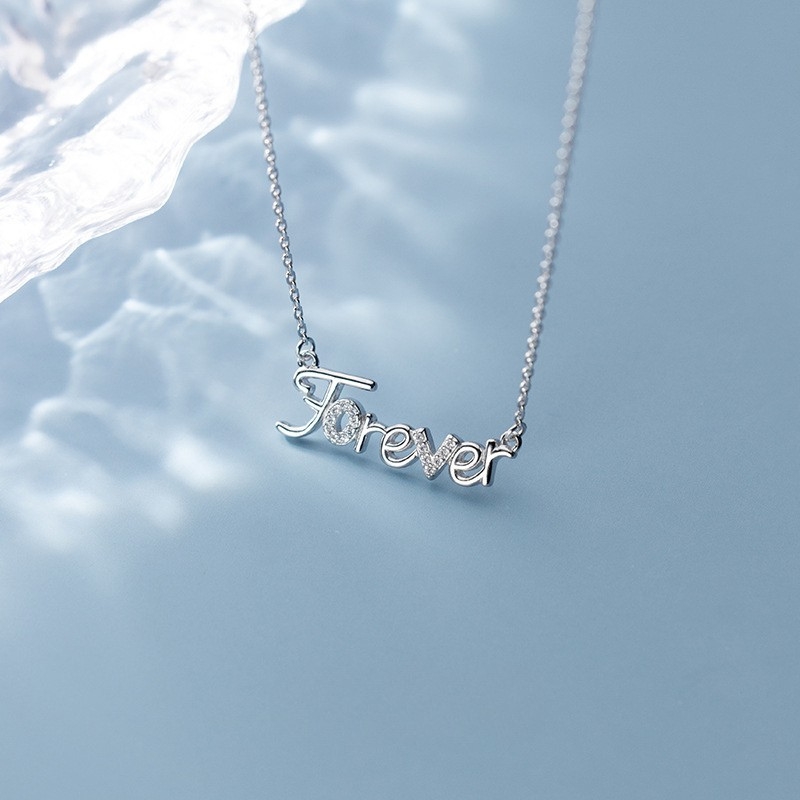 N22710 S925 silver creative letter forever zircon necklace