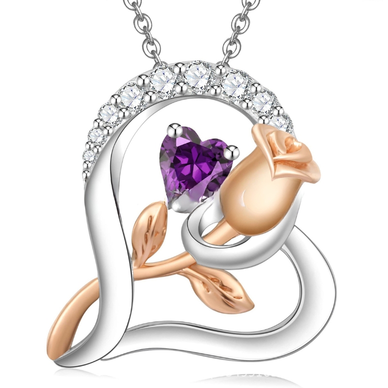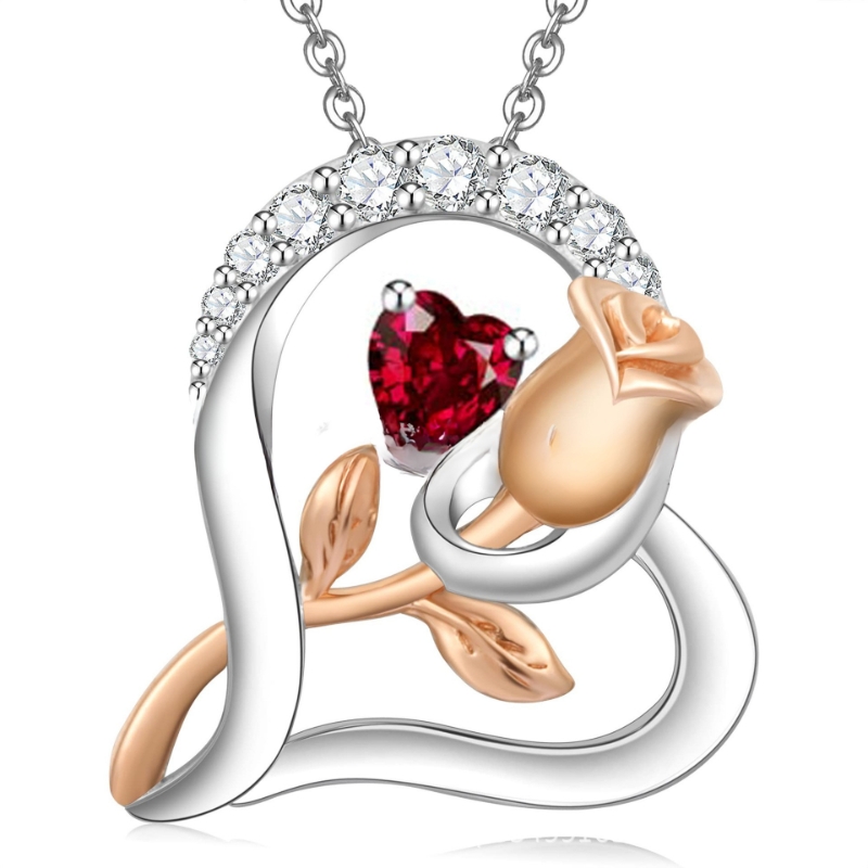 Celebrate love and individuality with this S925 sterling silver necklace, featuring a delicate rose and heart motif entwined with a shimmering birthstone. Crafted for elegance and sentiment, the polished silver setting highlights the romantic silhouette while the personalized gem adds a meaningful touch. Perfect for birthdays, anniversaries, or heartfelt gifting, this piece blends timeless charm with emotional resonance.