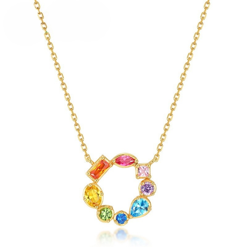 Add a splash of brilliance to your everyday style with this S925 silver colorful zircon necklace. Crafted from genuine sterling silver, it features a vibrant array of precision-cut zircon stones that shimmer in every hue. The delicate chain and minimalist setting highlight the playful elegance of the design, making it perfect for layering or wearing solo. Whether you're dressing up or keeping it casual, this necklace brings a joyful pop of color to any look.