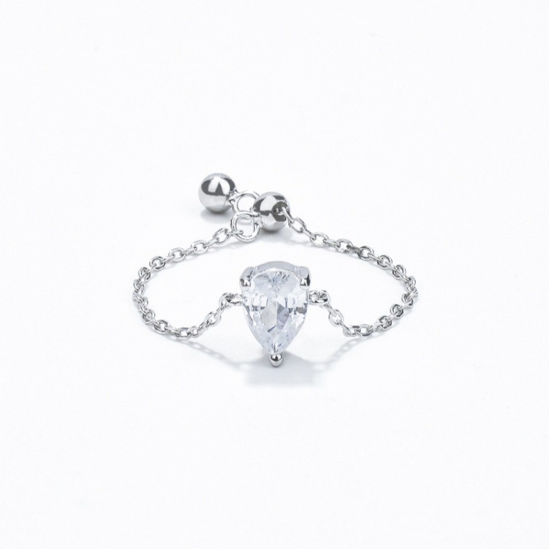 R22747 S925 silver zircon encrusted pear-shaped adjustable ring