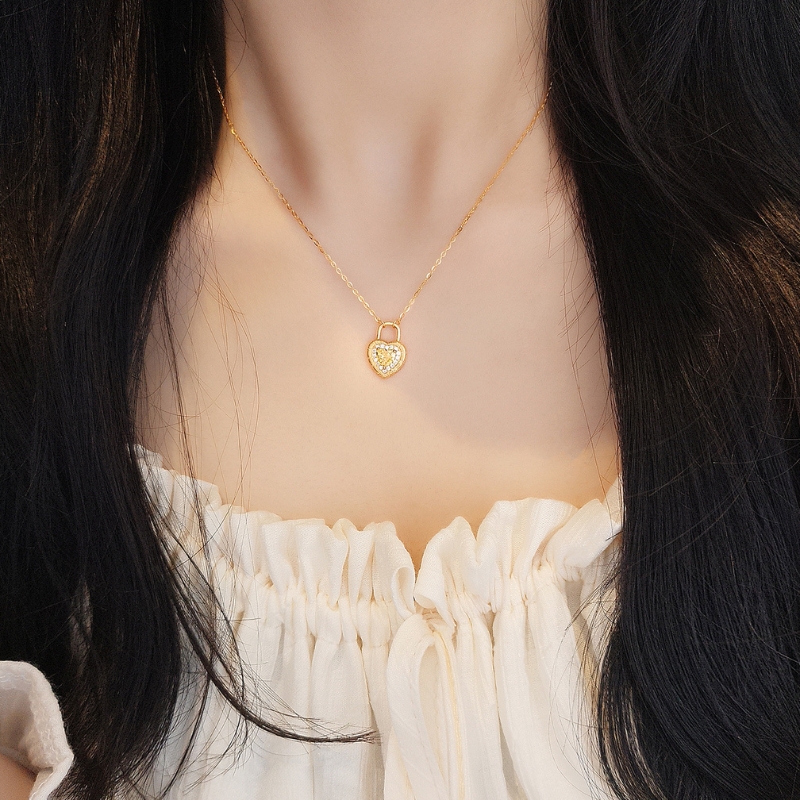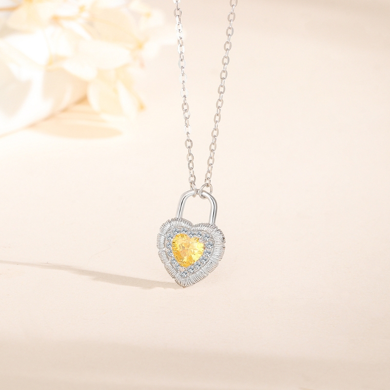 N22750 S925 silver love lock heart-shaped yellow zircon necklace