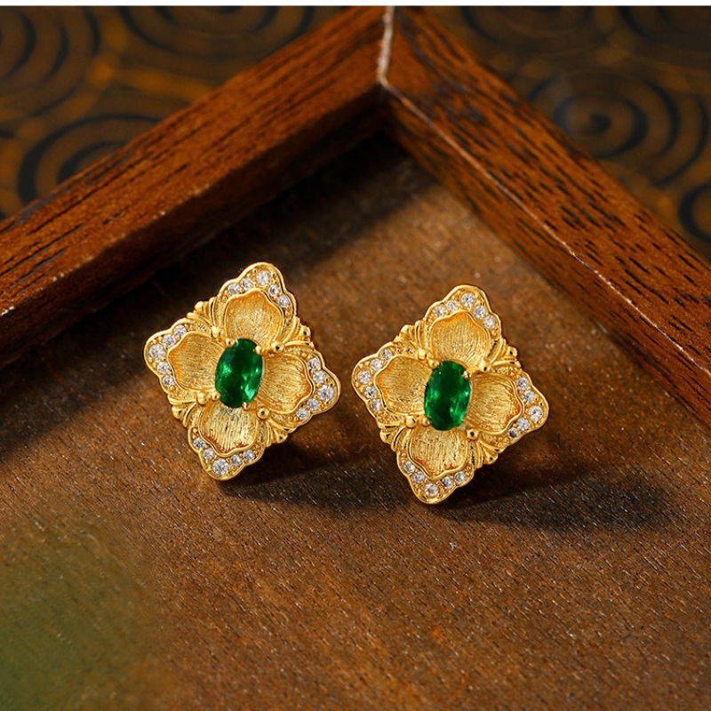 S22761 S925 silver italian burati craft emerald necklace stud earring set