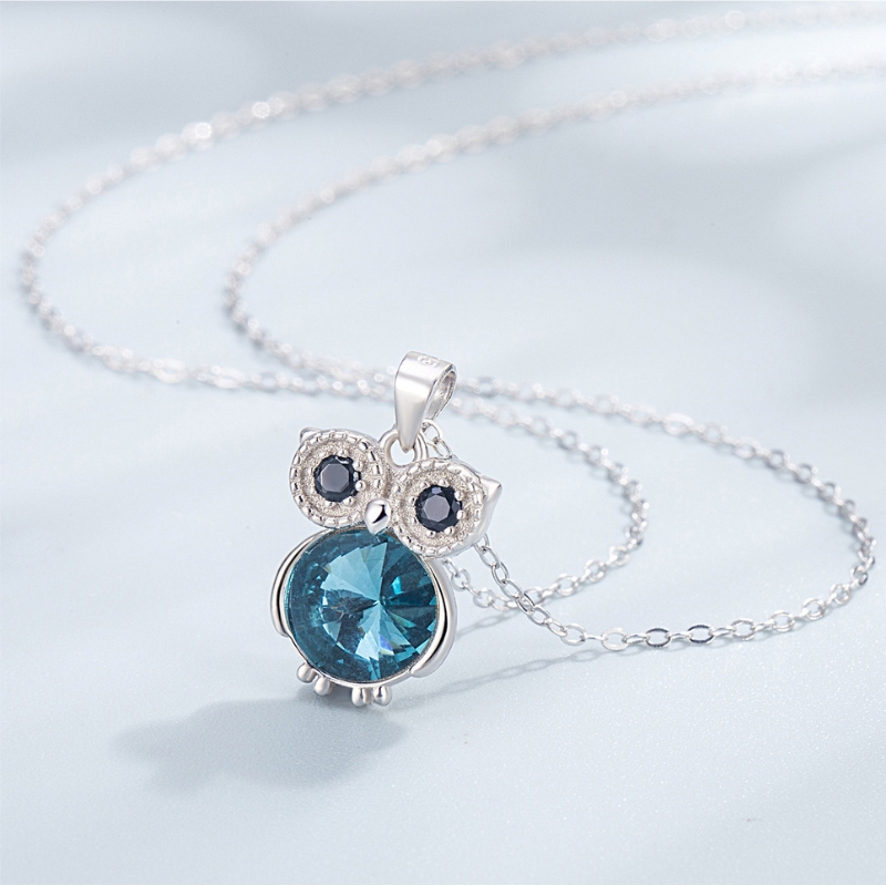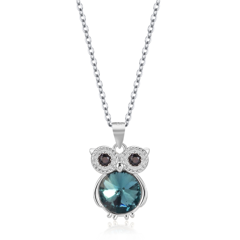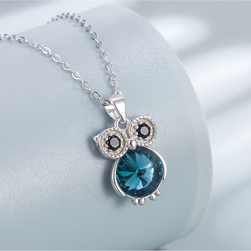 S22762 S925 silver Greek owl necklace stud earrings zircon set