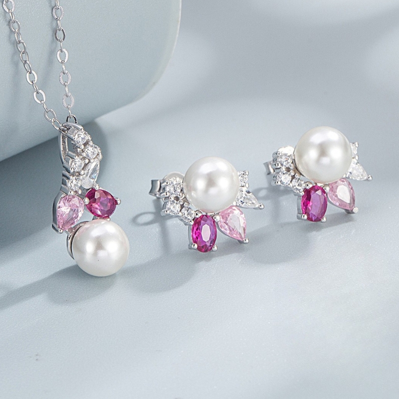 Radiate charm with this S925 silver jewelry set, featuring blush-pink zircon stones that sparkle with pearl romantic elegance. The set includes a necklace, earrings, and ring, each crafted with precision and polished to perfection. Ideal for gifting or elevating your everyday look, its soft hue and timeless design blend femininity with sophistication for a graceful, luminous finish.