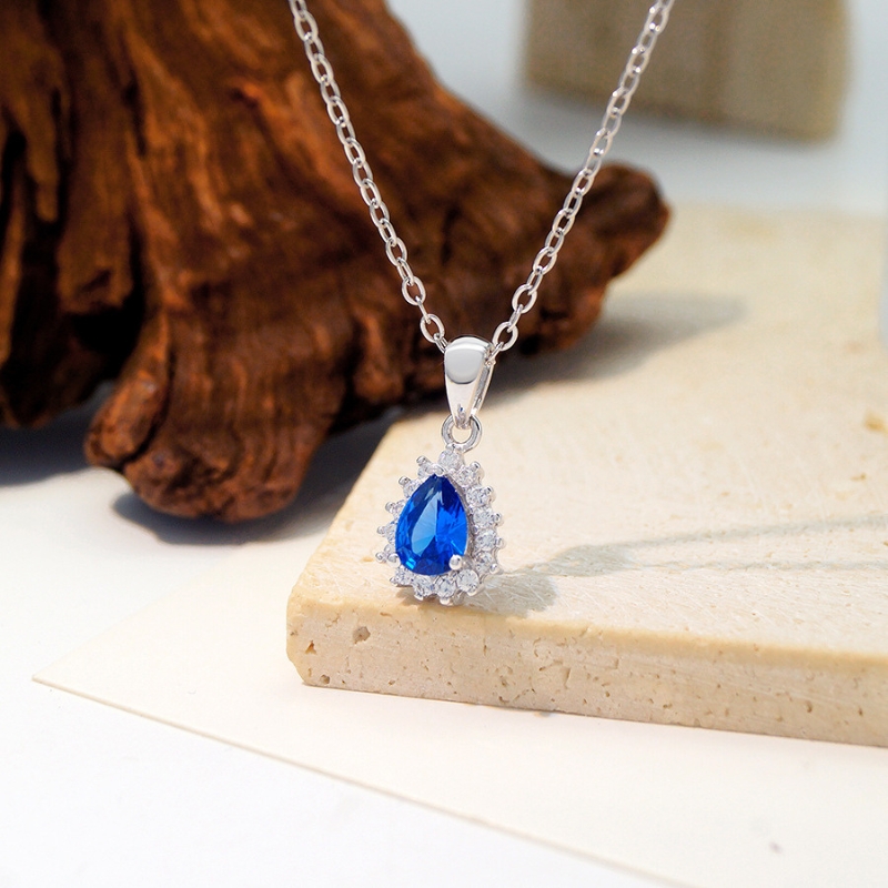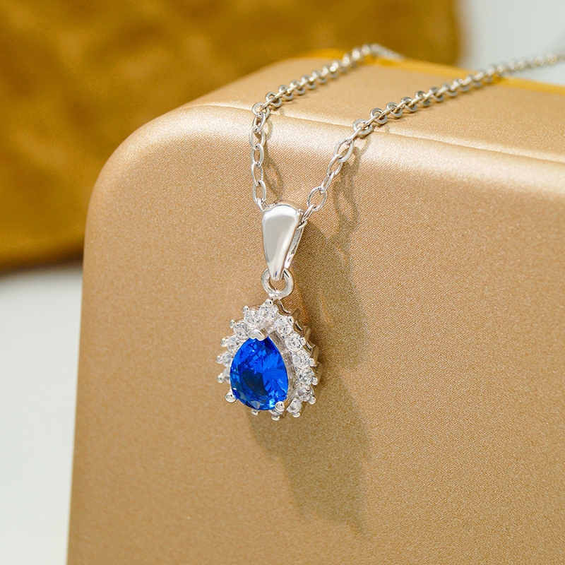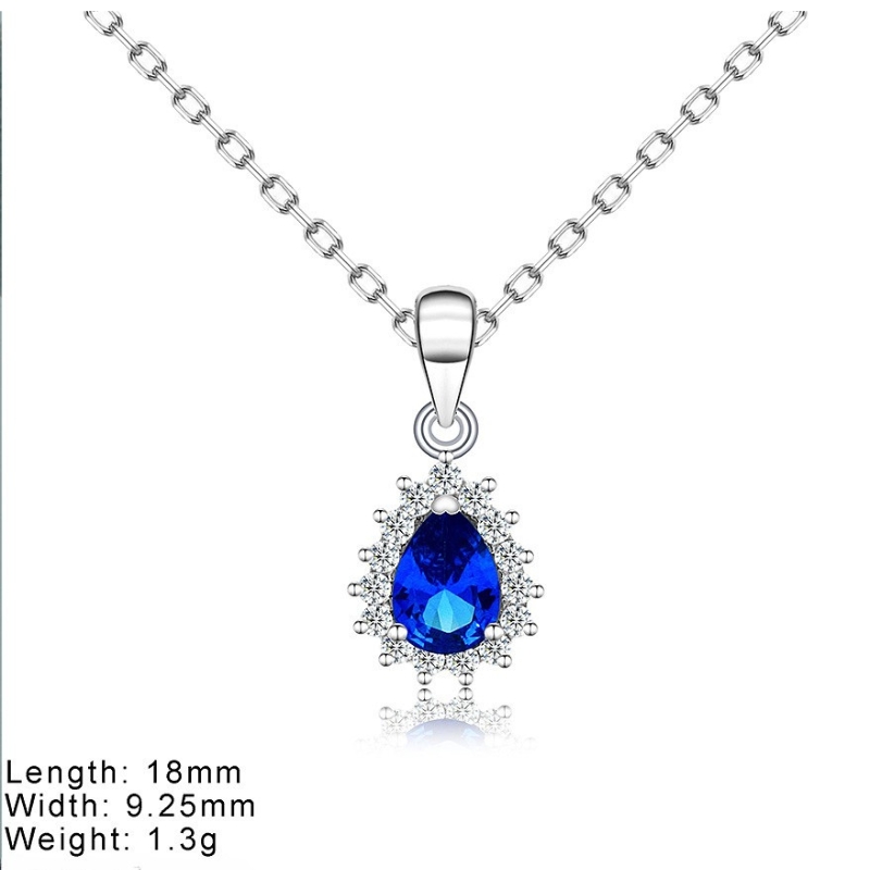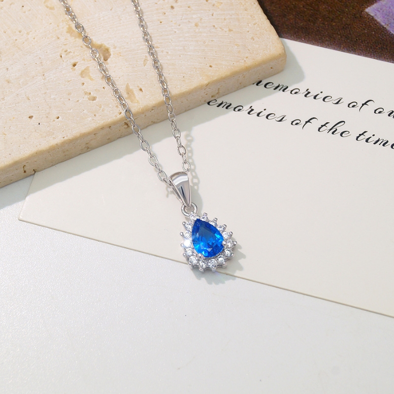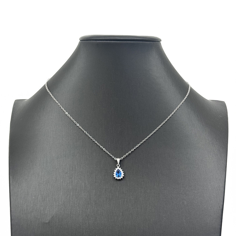N22767 S925 sterling silver blue tear necklace