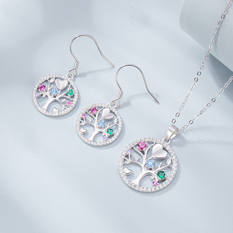 S22768 S925 silver tree of life jewelry set