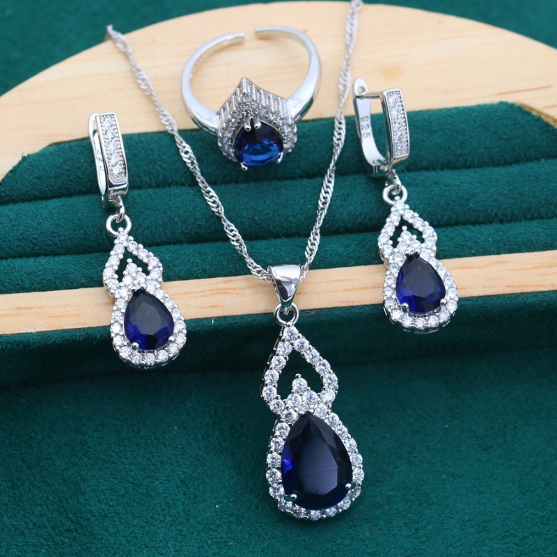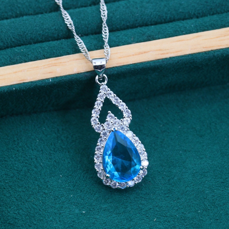 S22773 S925 silver zircon inlaid water drop ring, earrings and necklace jewelry set