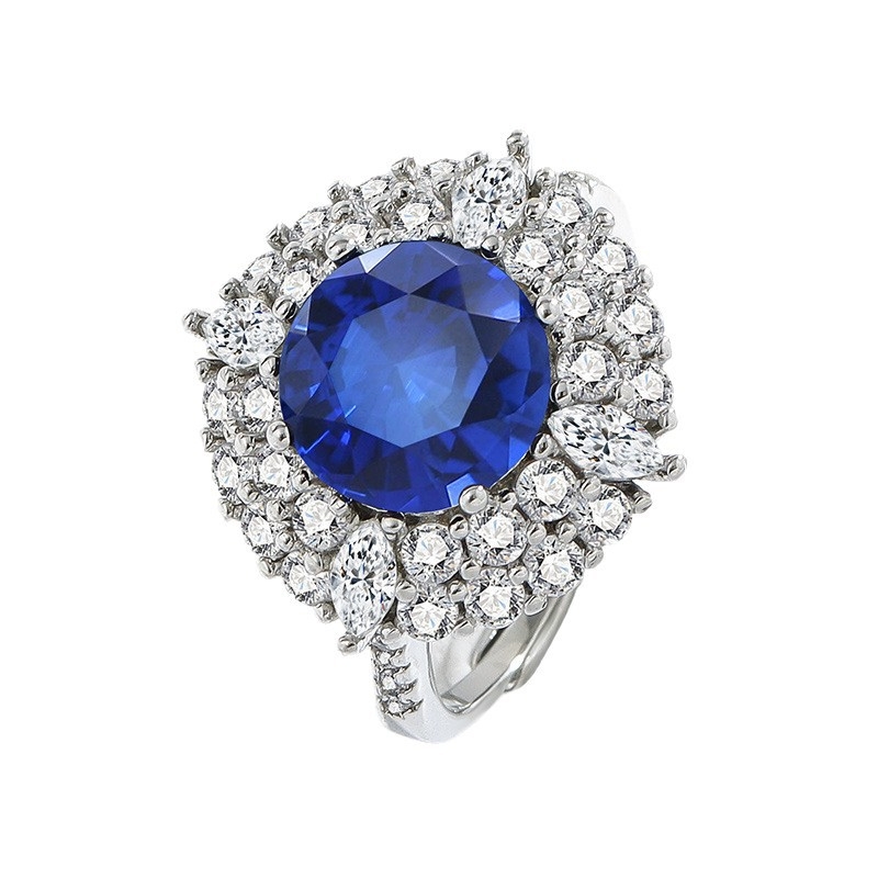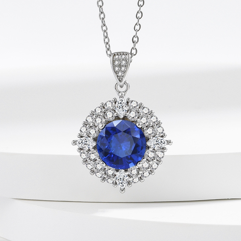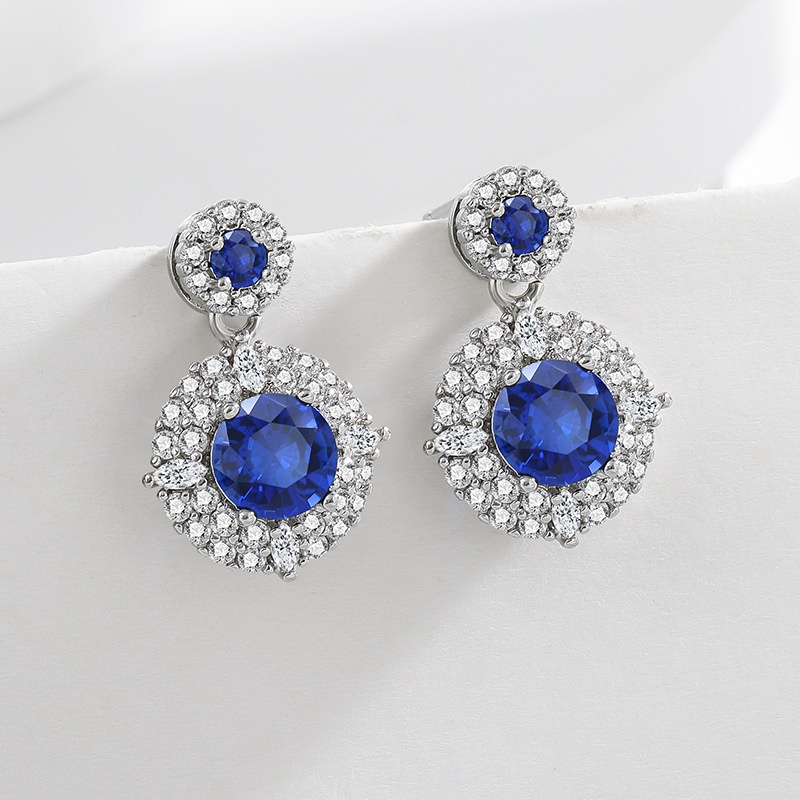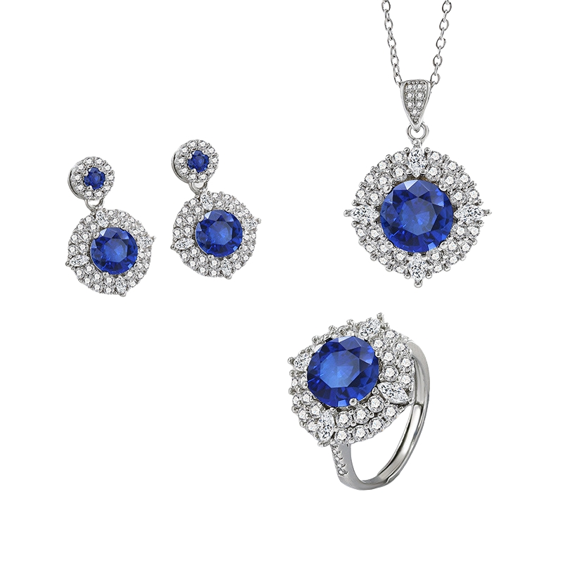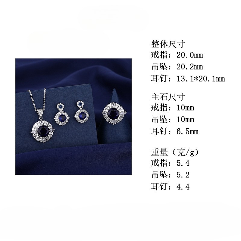 S22777 S925 silver three-piece set of colored treasure blue gemstone zircon encrusted set