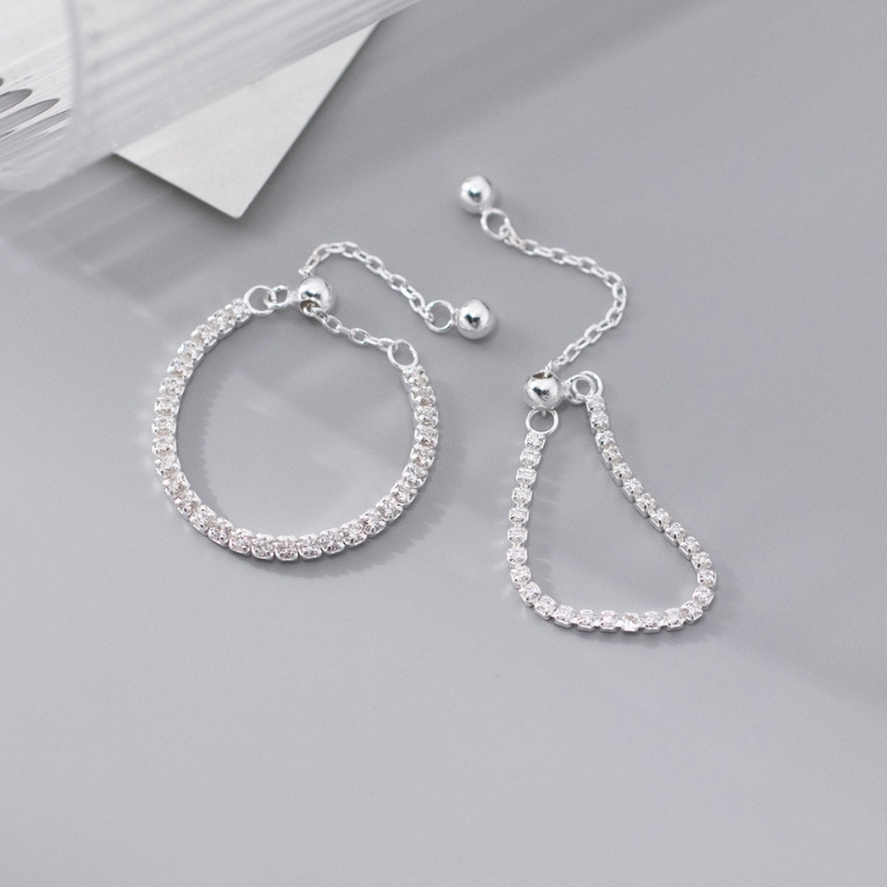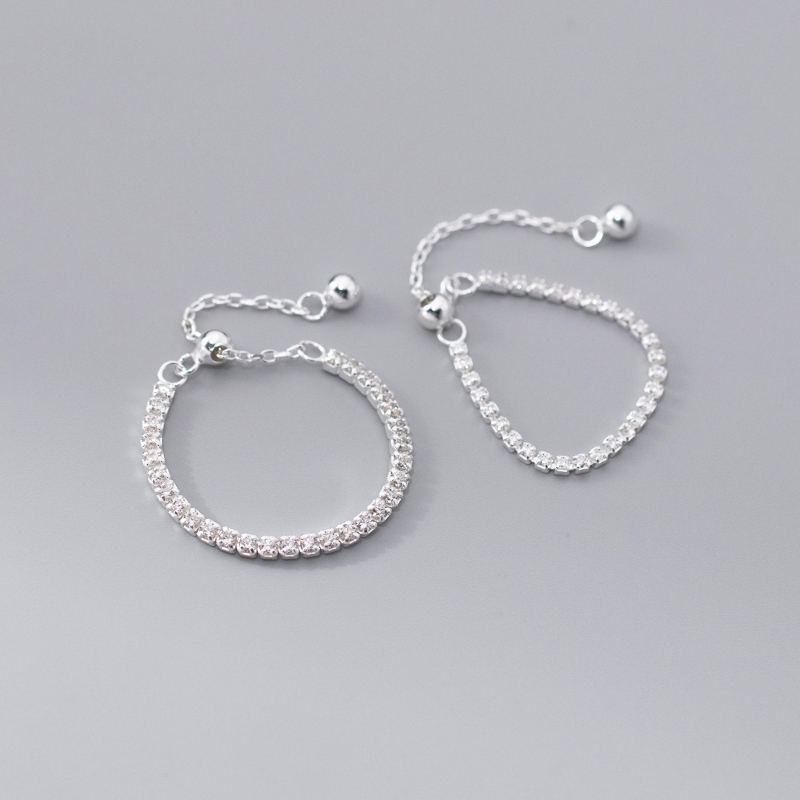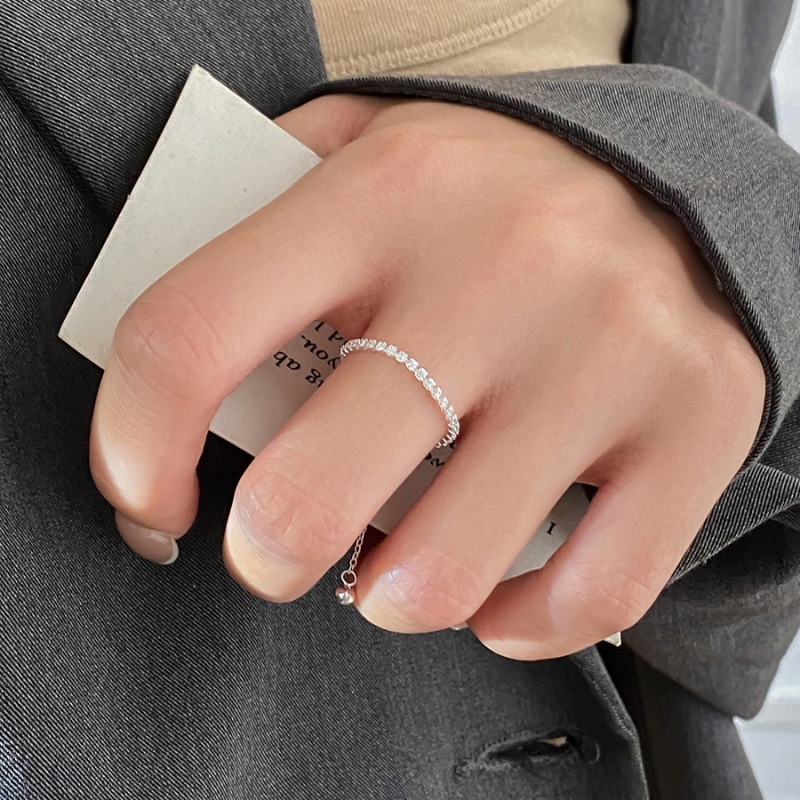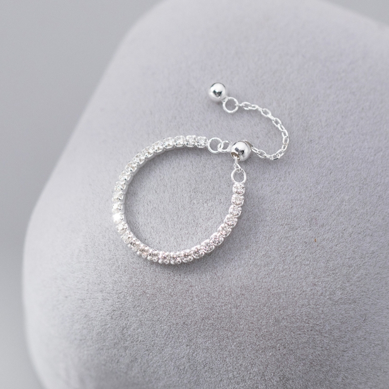 R22791 S925 silver full zircon chain pulls out ring adjustable ring