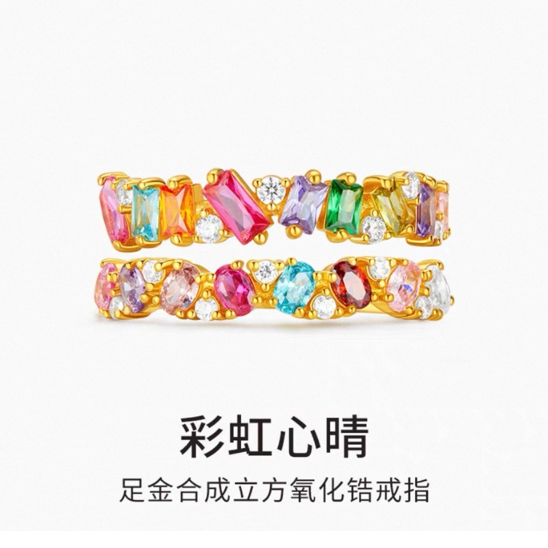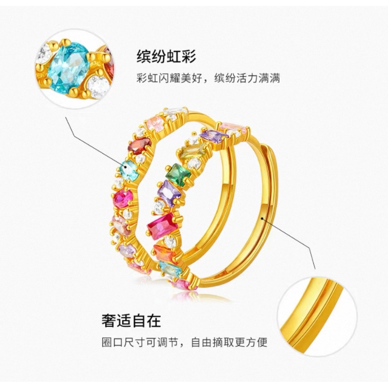 R22800 S925 silver plated yellow gold inlaid rainbow zircon ring