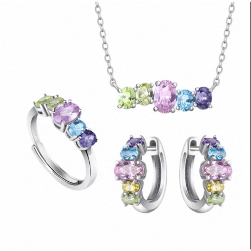 Elevate your elegance with this S925 silver jewelry set featuring natural tourmaline gemstones. Each piece showcases vibrant hues and refined craftsmanship, blending timeless charm with modern sophistication. The set includes a necklace, earrings, and ring—perfect for gifting or personal indulgence. Tourmaline’s natural energy adds a touch of meaning to your style, making every wear unforgettable.