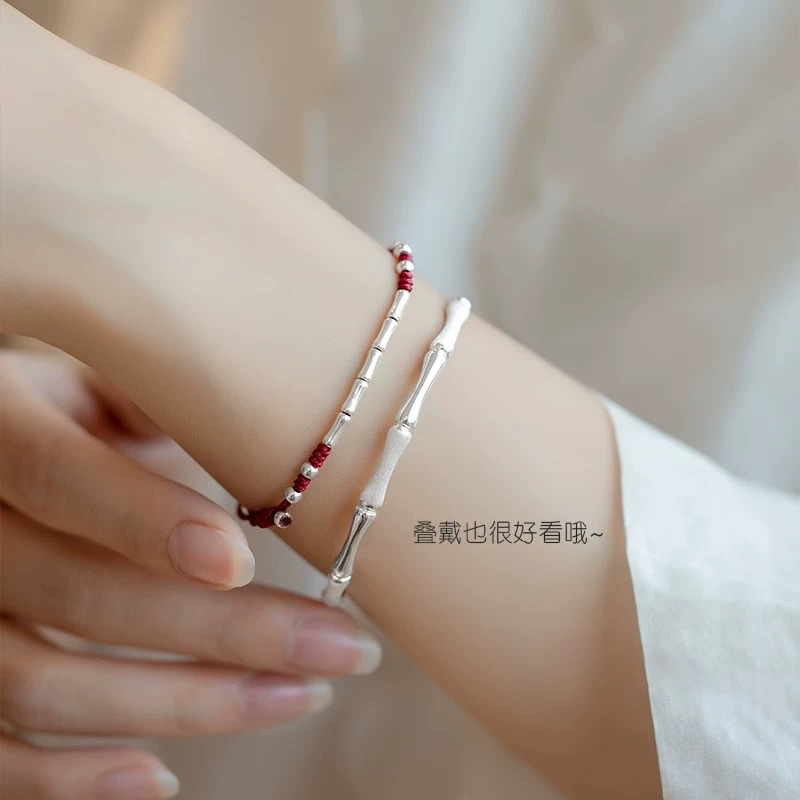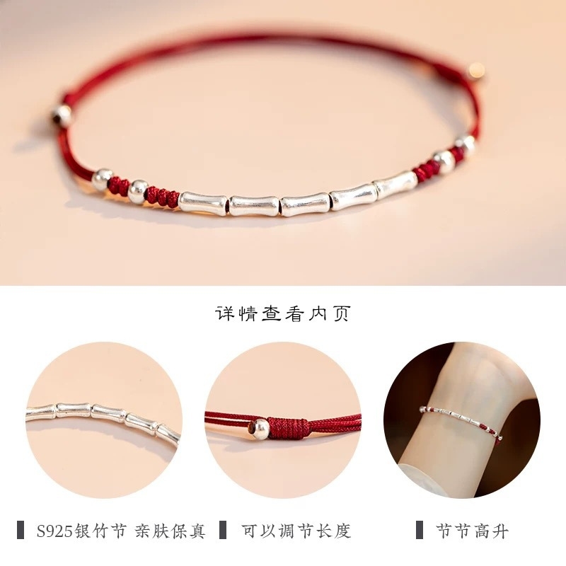Celebrate strength and serenity with this S925 silver bamboo bracelet, braided with vibrant red rope for a bold yet elegant touch. The adjustable design ensures a perfect fit, while the bamboo motif symbolizes resilience and harmony. A meaningful accessory for everyday wear or gifting, blending traditional symbolism with modern style in a lightweight, comfortable piece.
