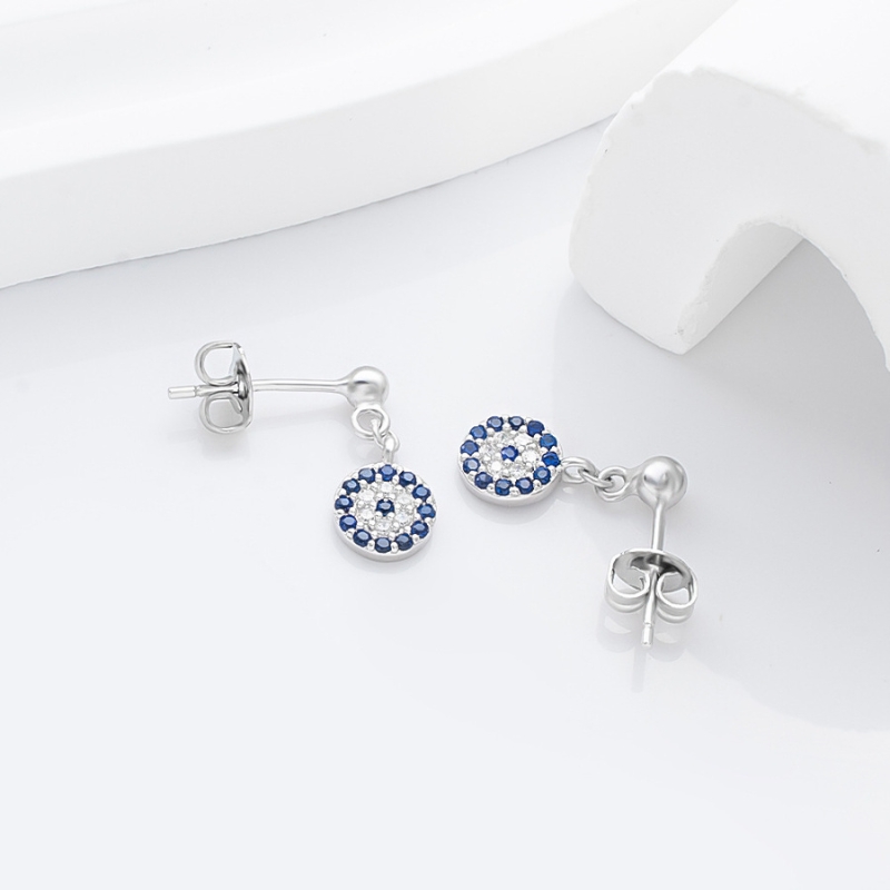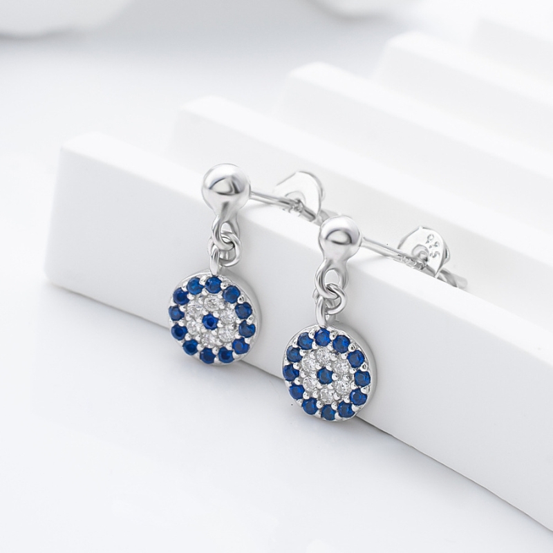 Crafted in luminous S925 silver, these devil’s eye circle earrings feature a brilliant blue zircon at the center, symbolizing protection and allure. The sleek round design blends mystical charm with modern elegance, making them perfect for everyday wear or special occasions. A striking accessory that radiates confidence, mystery, and timeless style in just one glance.