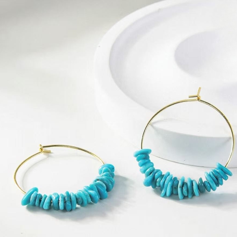 E22864 S925 silver irregular natural crushed stone bead earrings