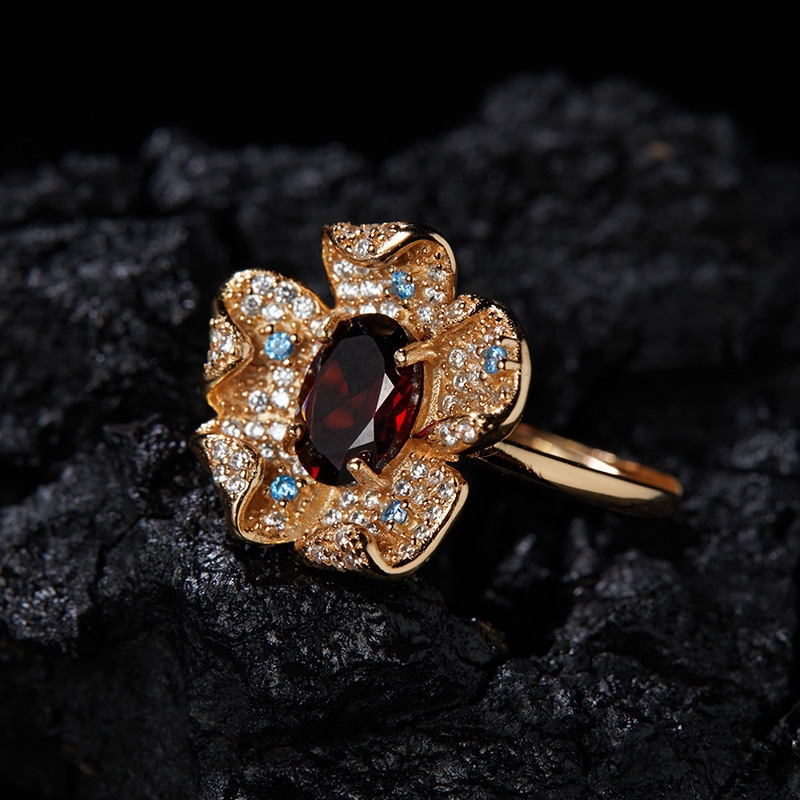 Crafted in luminous S925 sterling silver, this enchanting ring blooms with a delicate garret flower design. At its heart rests a radiant natural topaz, symbolizing clarity and serenity. The polished band enhances its timeless elegance, making it perfect for everyday wear or special occasions. A graceful fusion of nature-inspired artistry and refined craftsmanship.