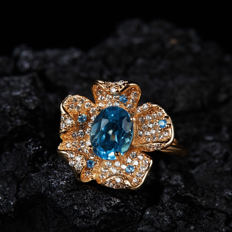 R22877 S925 silver natural topaz garret flower ring