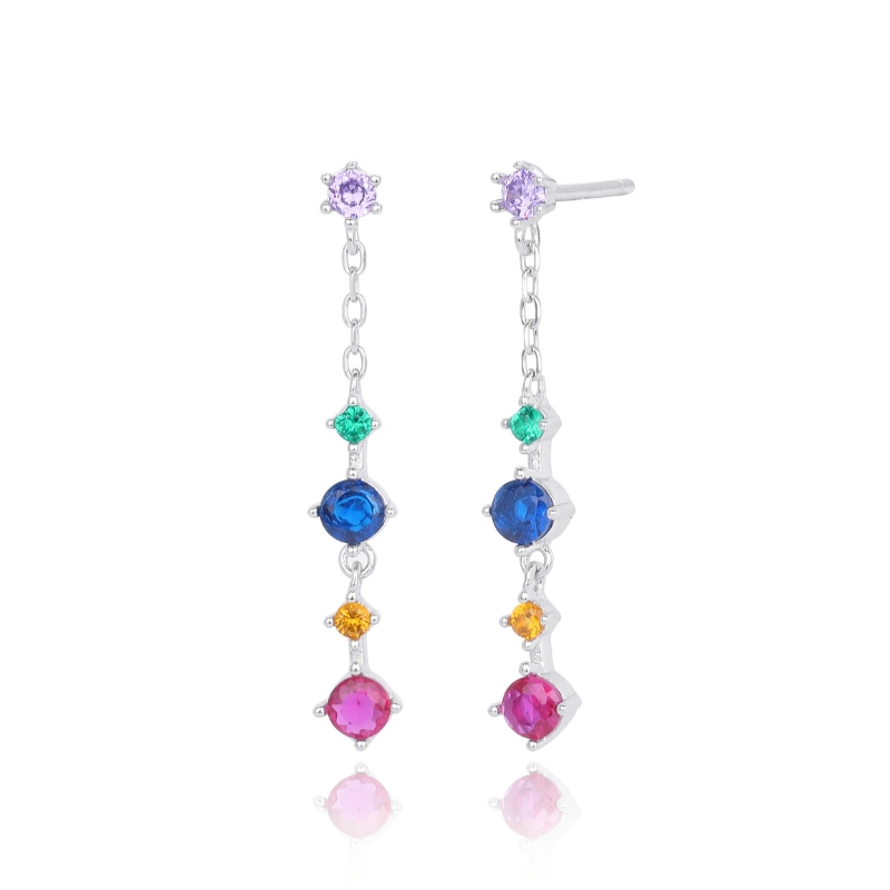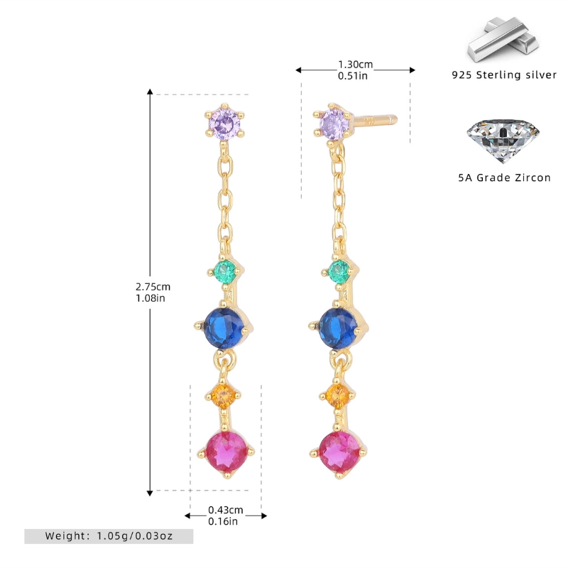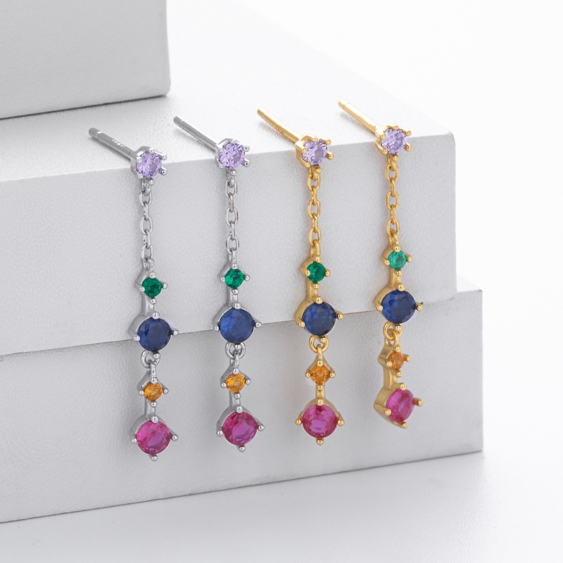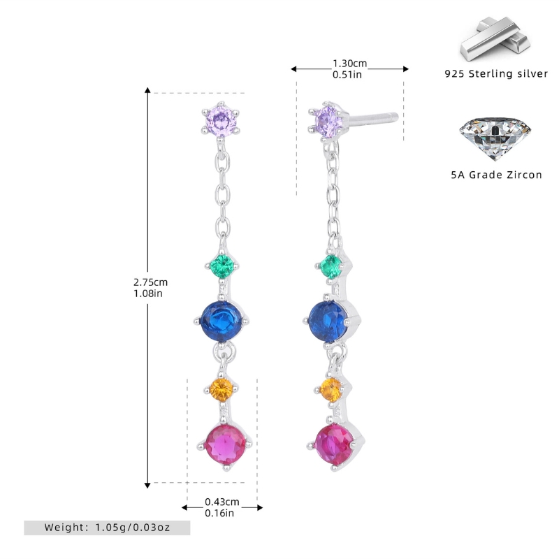 E22887 S925 silver inlaid zirconium long fringed chain earring