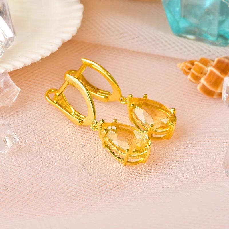E22952 S925 silver yellow zircon water drops sweet tassel earring