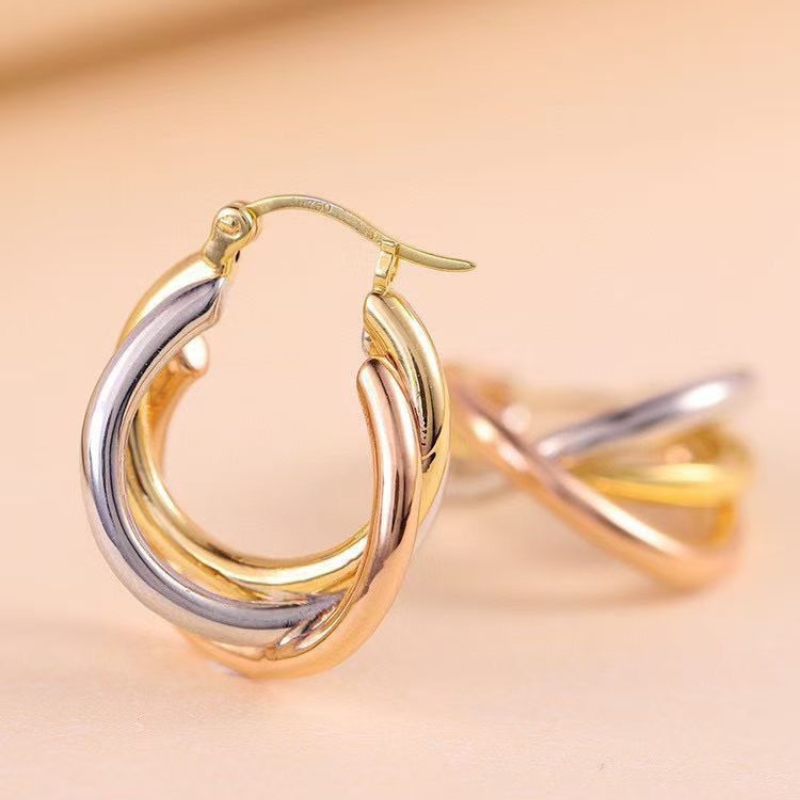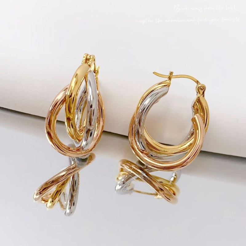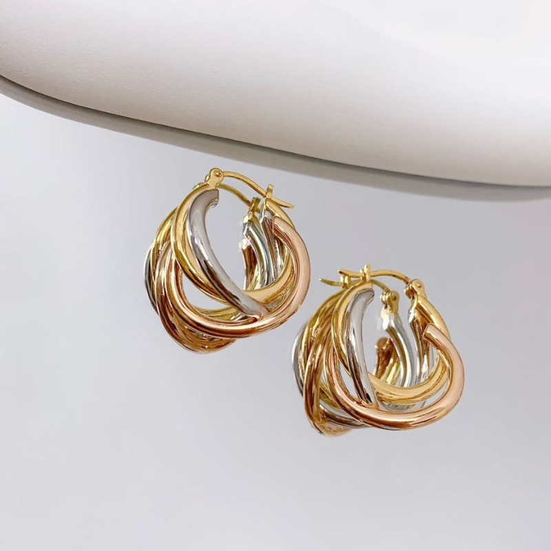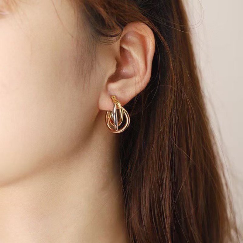 Crafted in premium S925 silver, these tri-toned three-line earrings blend elegance with modern artistry. Featuring sleek rows in silver, gold, and rose hues, they create a harmonious contrast that elevates any look. Lightweight yet striking, the design offers versatile wear from casual chic to evening glamour, making them a timeless accessory for confident, style-forward individuals.